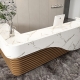 It is also better than nature marble by stain-resistance,easy maintenance more color options and could be any shape. So it is very suitable for white front desk.